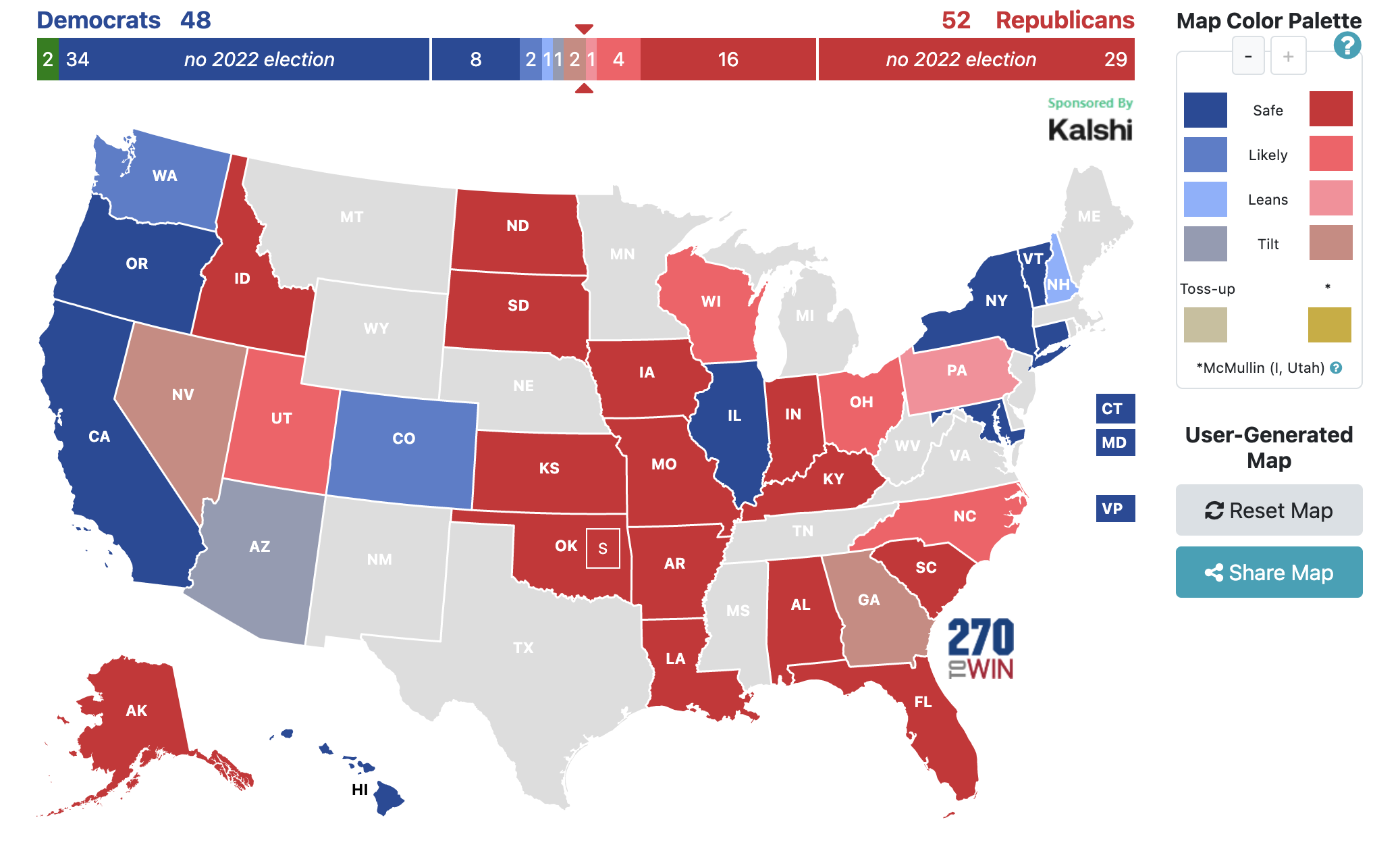 - 52 GOP seats: 13%