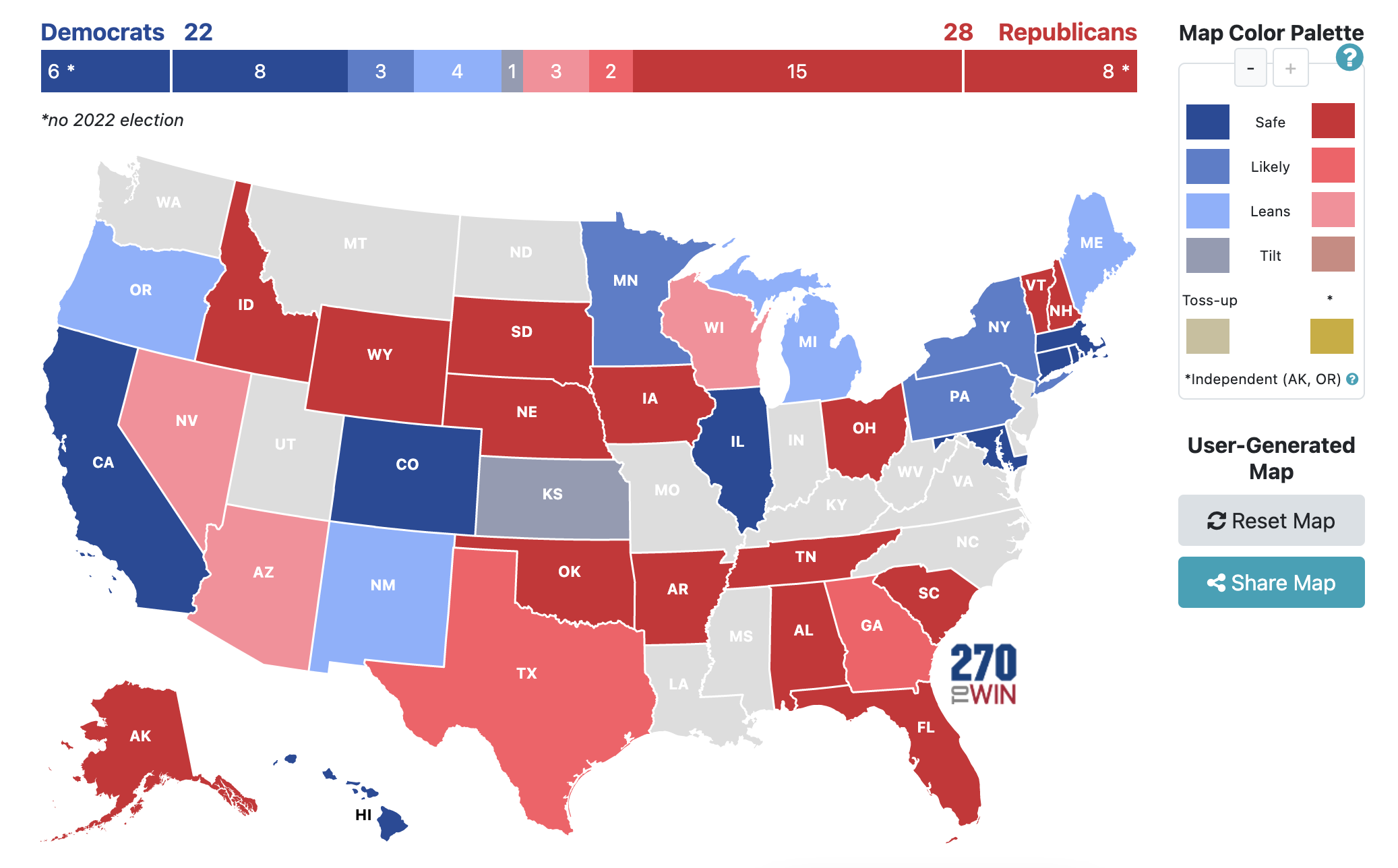 - OH: R+6.3 (80% CI: R+13 to D+0.5)