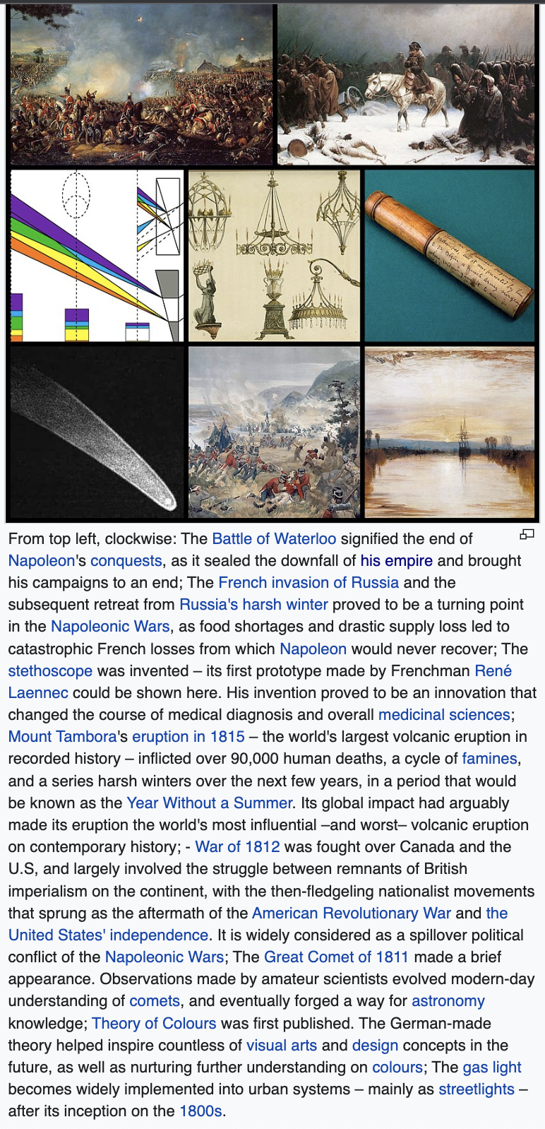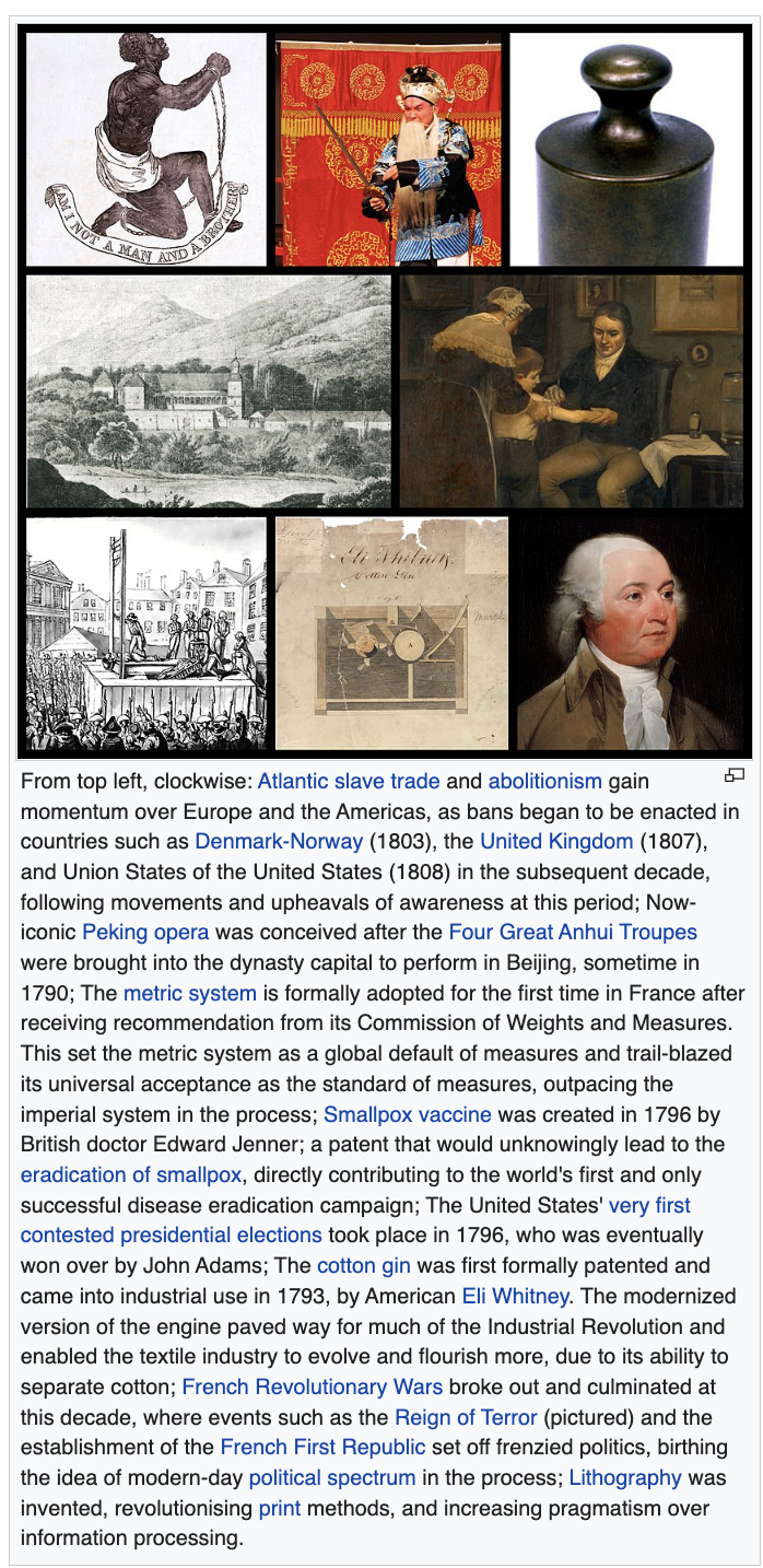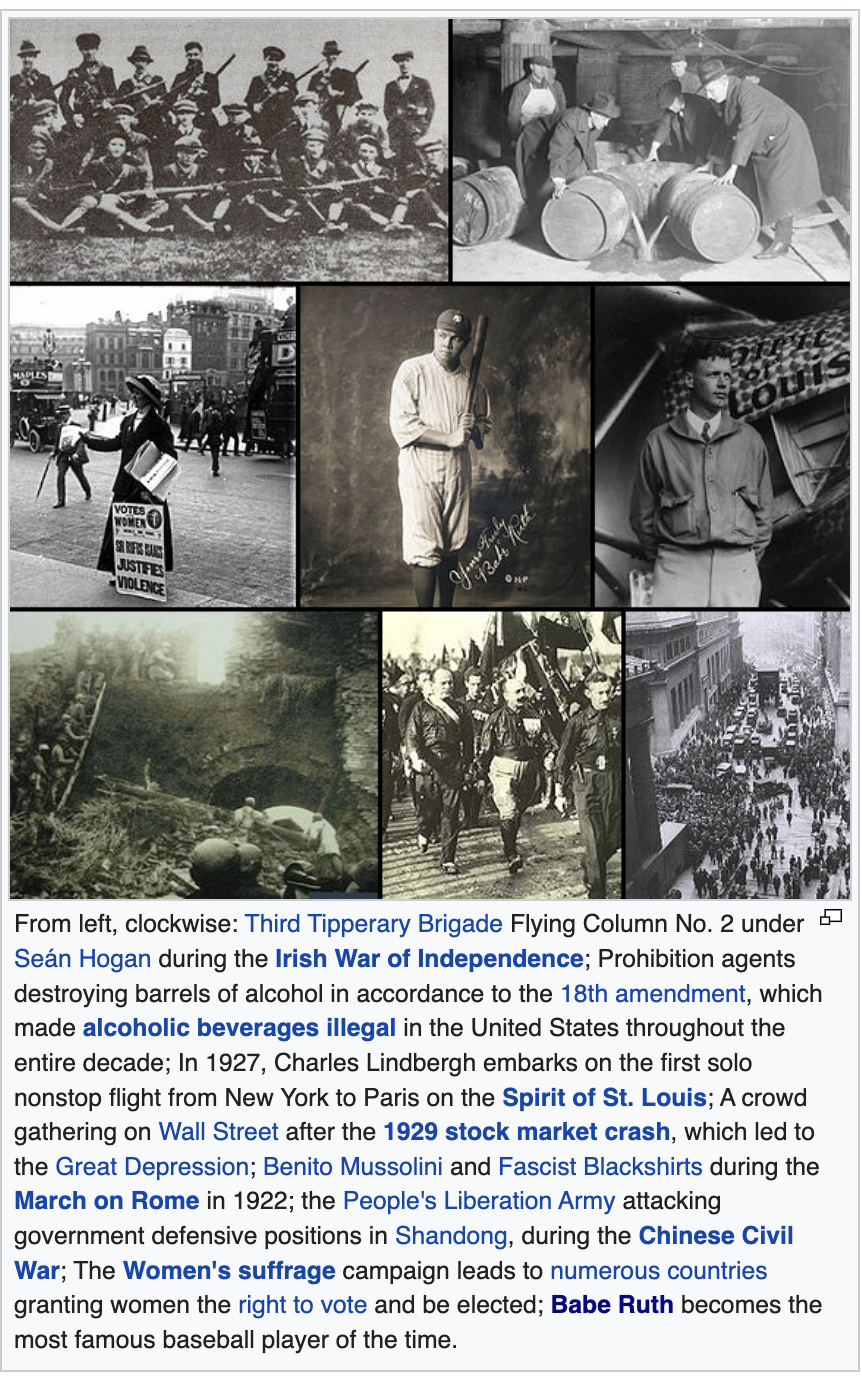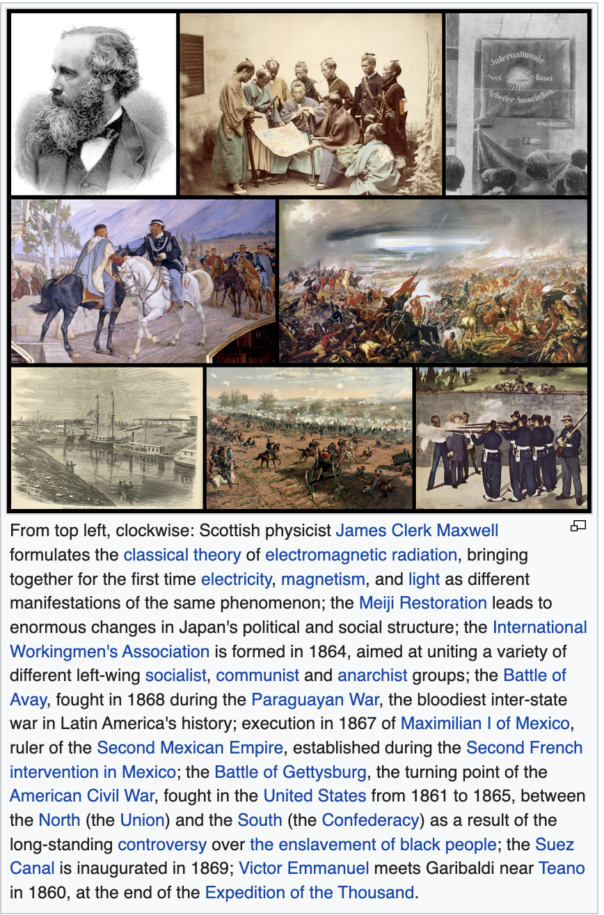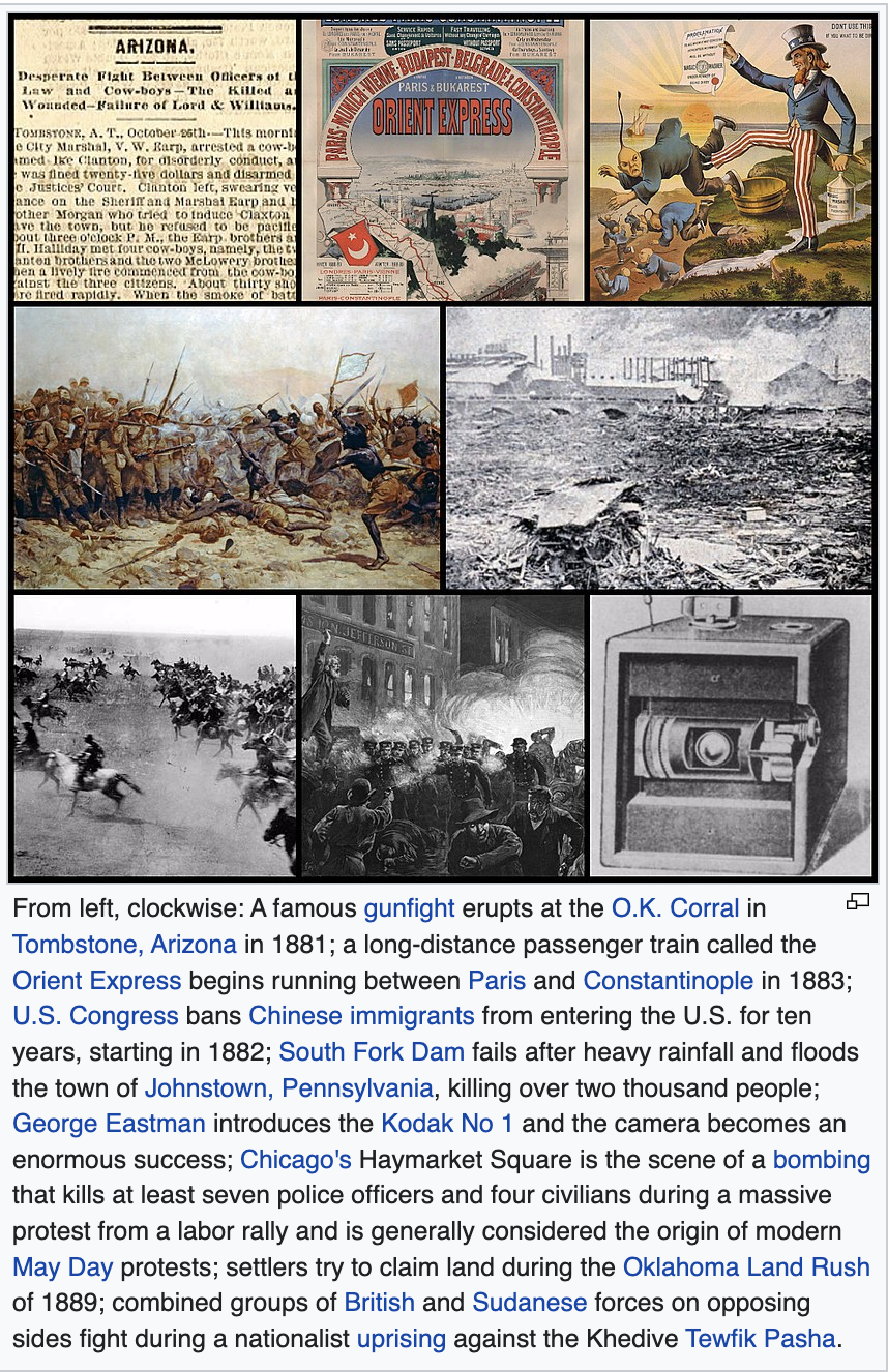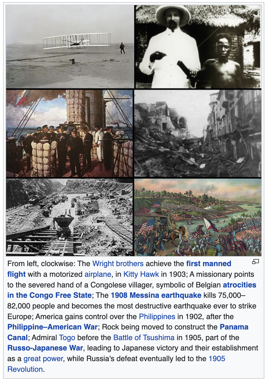 Wikipedia has a cool feature where they summarize various decades in pictures. These are really fun to see, to get a sense of history - especially a sense of what events were happening at the same time.
