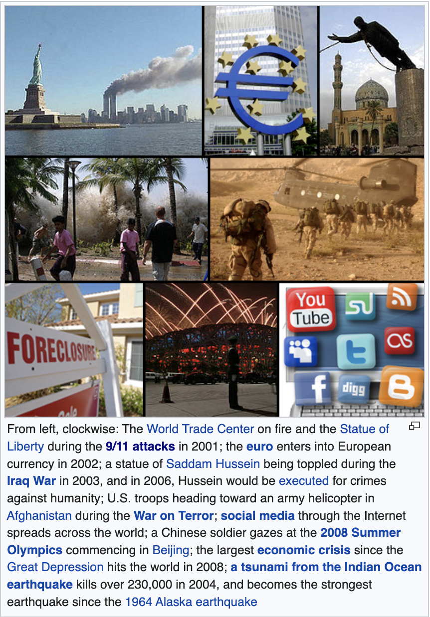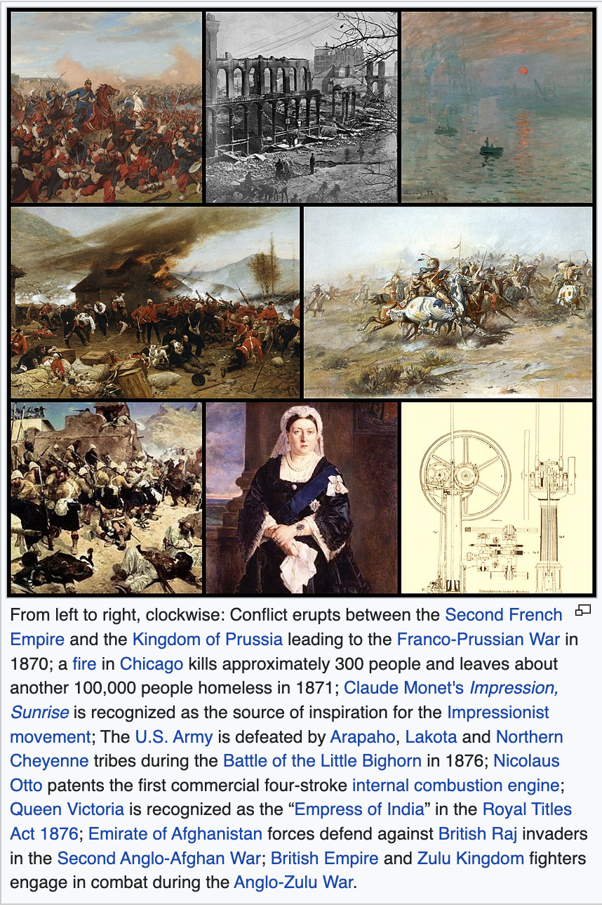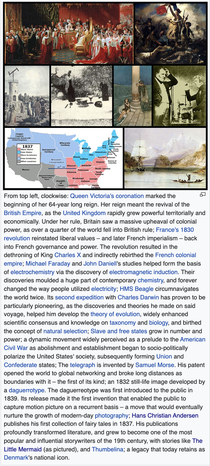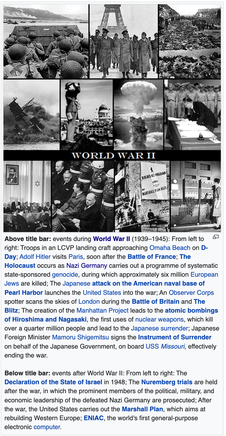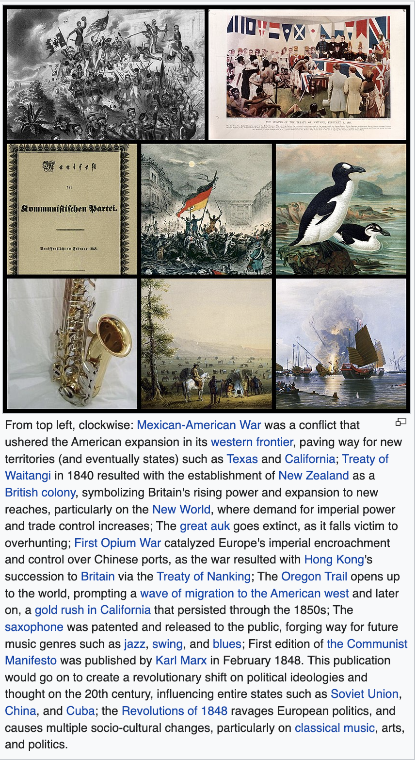 Wikipedia has a cool feature where they summarize various decades in pictures. These are really fun to see, to get a sense of history - especially a sense of what events were happening at the same time.