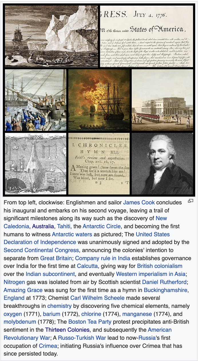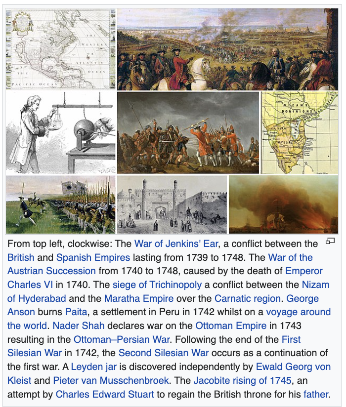 It's a bummer that Wikipedia's summaries end here. I'd love for Wikipedians to create more. It seems like the main events of the 1730s were: